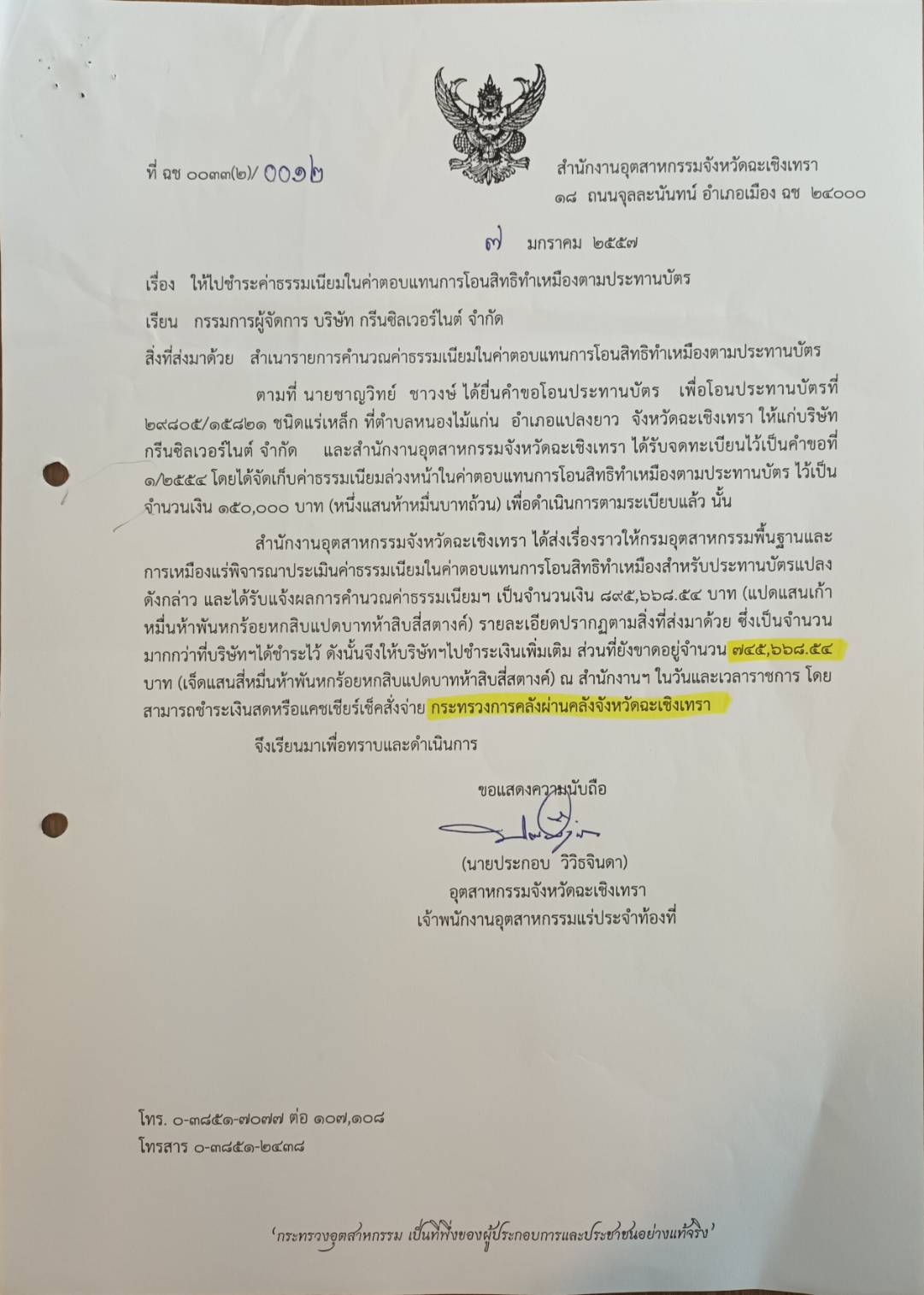 | 1 | โครงการเหมืองแร่เหล็ก คำขอประทานบัตรที่ 8/2541 (ประทานบัตรที่ 29805/15821) | 1600 CH1 | 27/07/2566 |